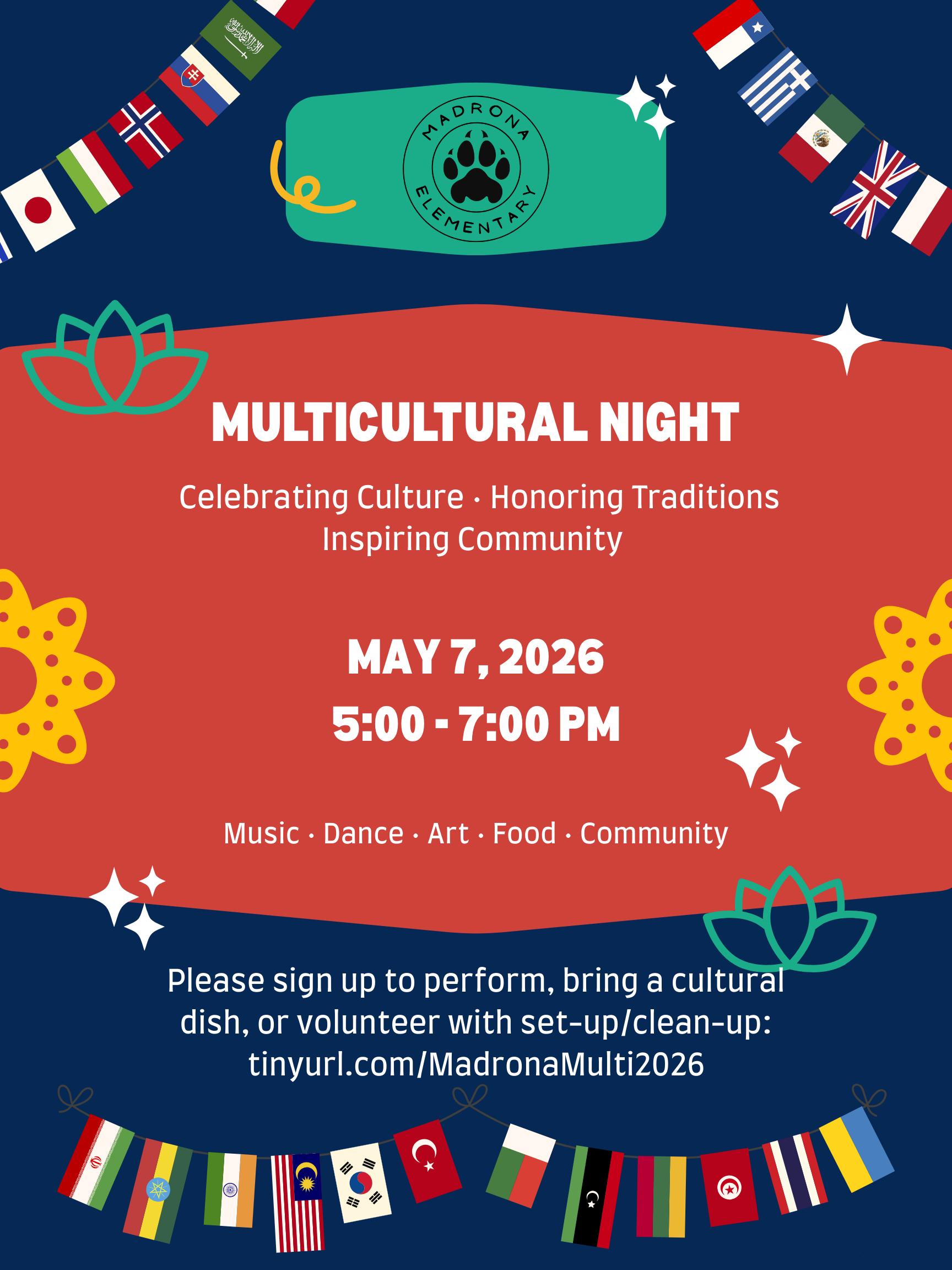 Join us on May 7 for our annual Multicultural Night! This is one of our most popular events and is a evening of honoring traditions, celebrating cultures, and coming together as a community to share food, music, dance, and art. If you would like to help with Multicultural Night, or bring a dish to share, please click here to sign up.